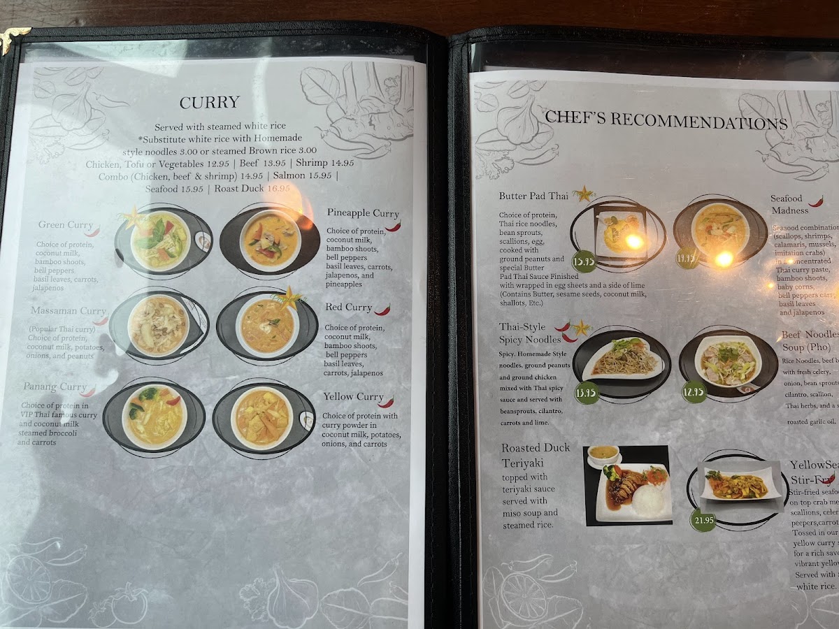 Green Curry is a spicy Thai dish made with coconut milk, bell peppers, bamboo shoots, and basil leaves, creating a flavorful and aromatic curry. It is typically served with steamed rice to balance the heat and richness of the curry.
